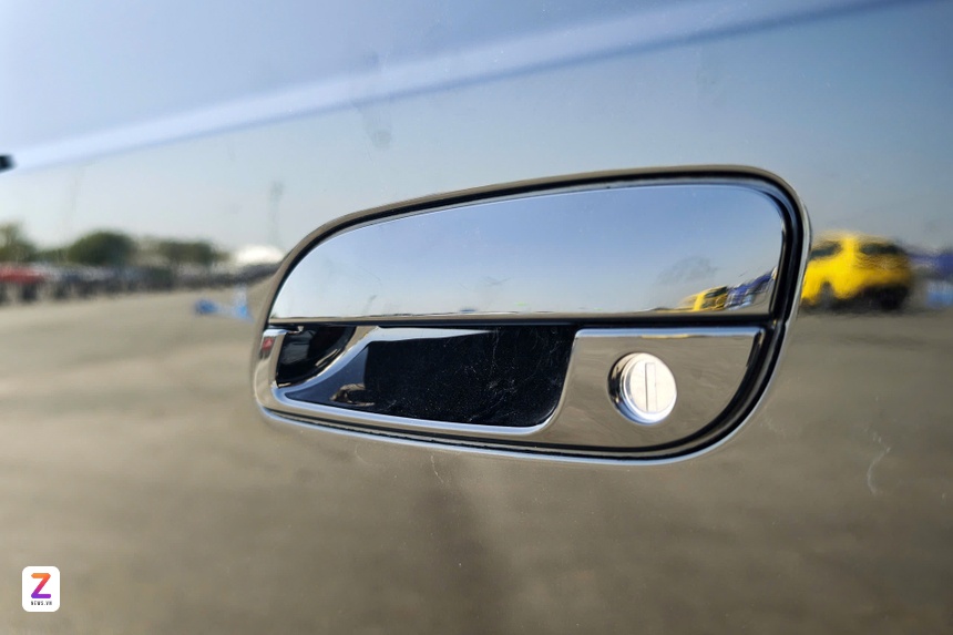 Cận cảnh tay nắm cửa phẳng trên VinFast Minio Green. Giống với VF 3, gương chiếu hậu trên Minio Green cũng được điều chỉnh và đóng/mở hoàn toàn thủ công.