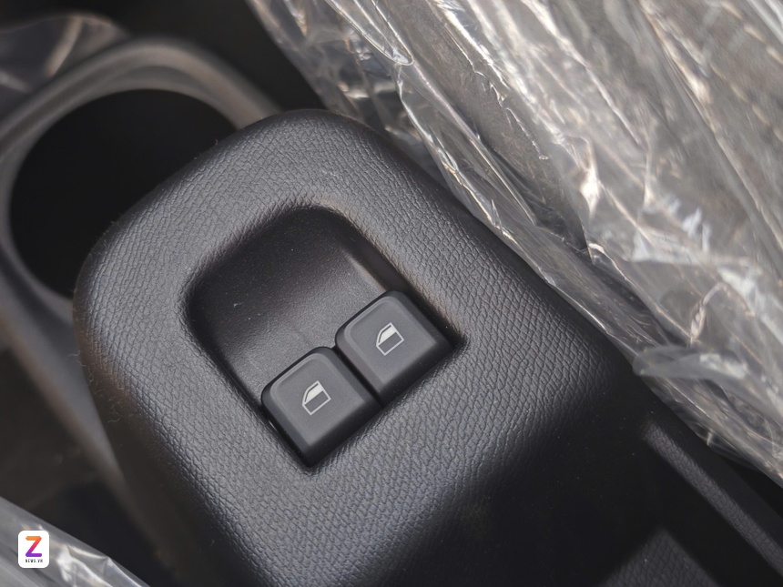 Giữa 2 ghế hàng đầu Minio Green là khu vực bố trí phanh tay cơ, khay đựng cốc cùng các phím vật lý điều chỉnh lên/xuống kính.